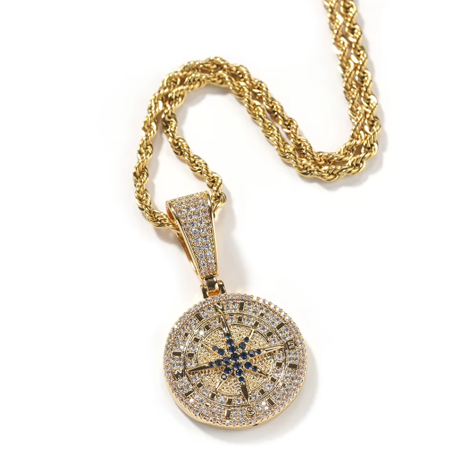 ICEVAULT | ICED COMPASS PENDANT - GOLD PVD PLATED